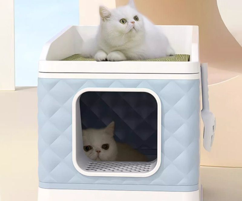 上下二層構造で省スペースを実現した多機能猫トイレボックスです。 上段は爪とぎスペース、下段はトイレ空間として使える便利な設計になっています。 折りたたみ式で収納や移動も簡単に行え、通気性に優れた窓付きで臭いもこもりません。 専用マット付きで砂の飛び散りを防ぎ、大型猫や多頭飼いのご家庭にも対応可能な広々設計です。 お手入れしやすく清潔に保てる実用的なボックスタイプの猫トイレです。