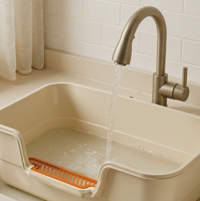付属の漏沙板が猫砂の飛び散りを効果的に防ぎ、お掃除の手間を軽減します。