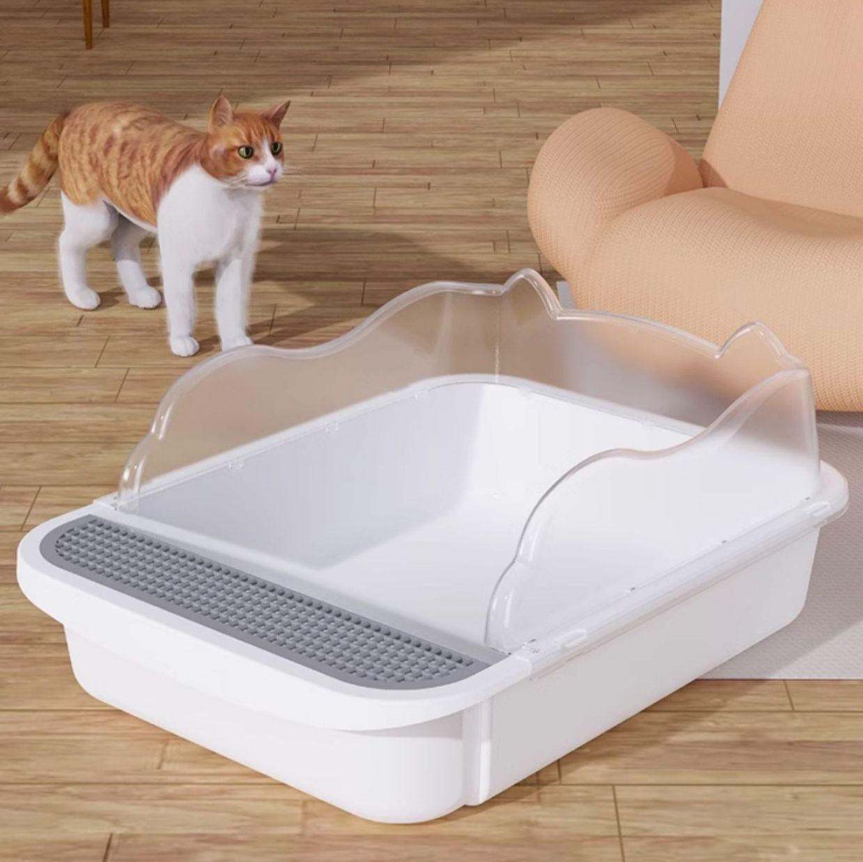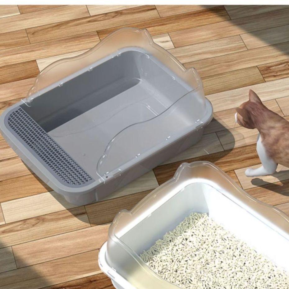 大型の猫トイレで、上部が大きく開く構造により掃除がとても簡単です。