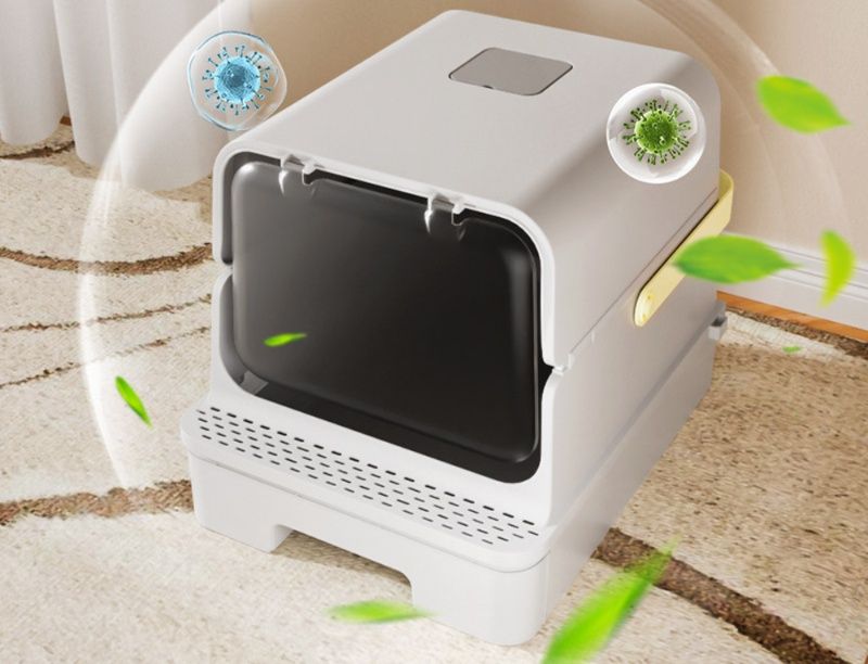 密閉式の扉付き設計で臭いや砂の飛び散りをしっかり防ぎます。