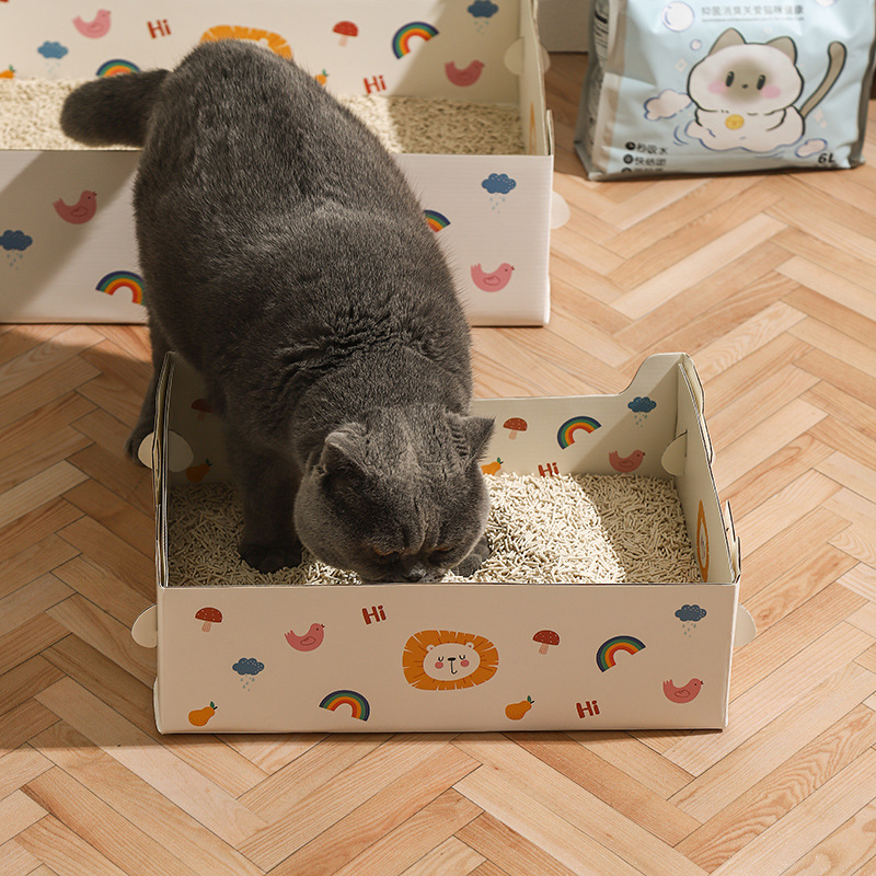 可愛い動物イラスト付きの使い捨て猫トイレです。