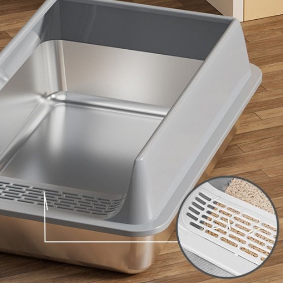 踏板部分に特殊な格子構造を採用し、猫が出入りする際に砂を自動的に濾過してトイレ内に戻します。