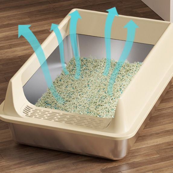 砂の飛び散りを最小限に抑え、お部屋を清潔に保つ機能的な猫トイレです。