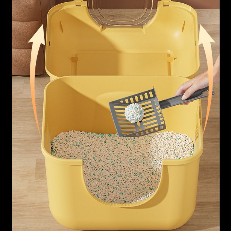 上部には便利な収納スペースを備え、専用スコップや猫砂を整理整頓できます。
