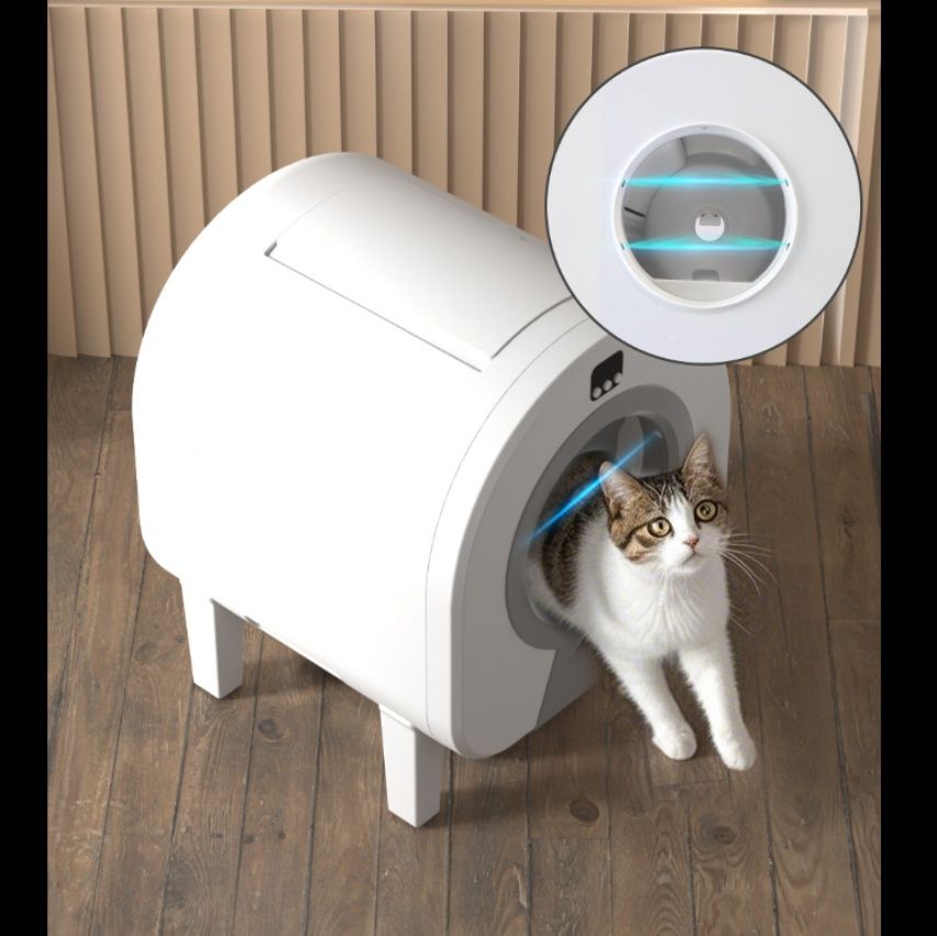 先進的な自動清掃機能を搭載したドーム型の猫トイレです。