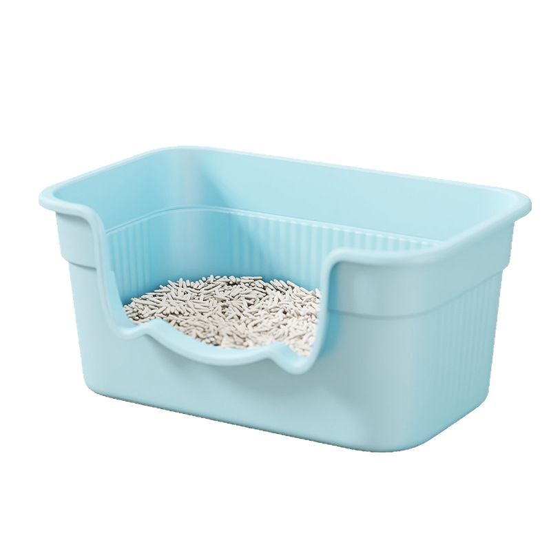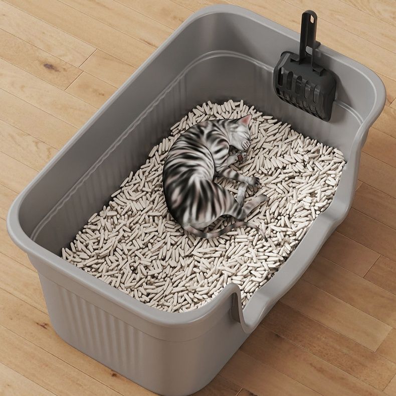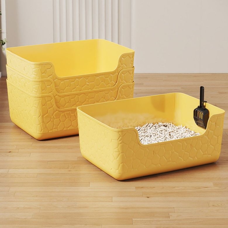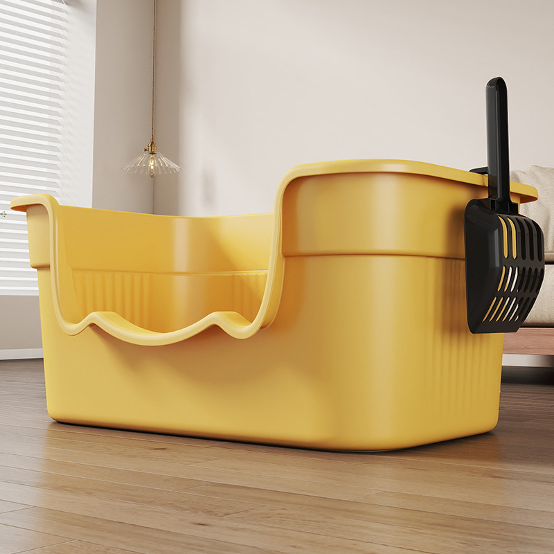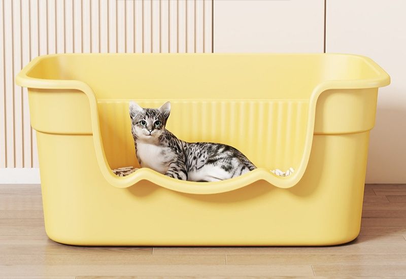 高めの壁で猫砂の飛び散りをしっかり防ぐ深型の猫トイレです。