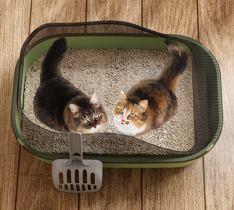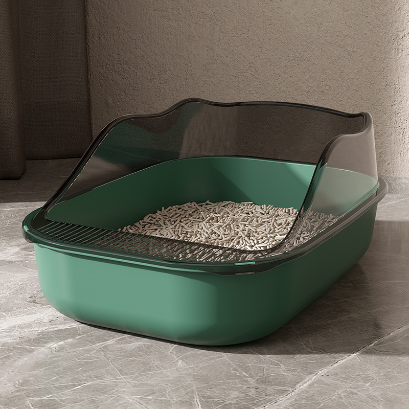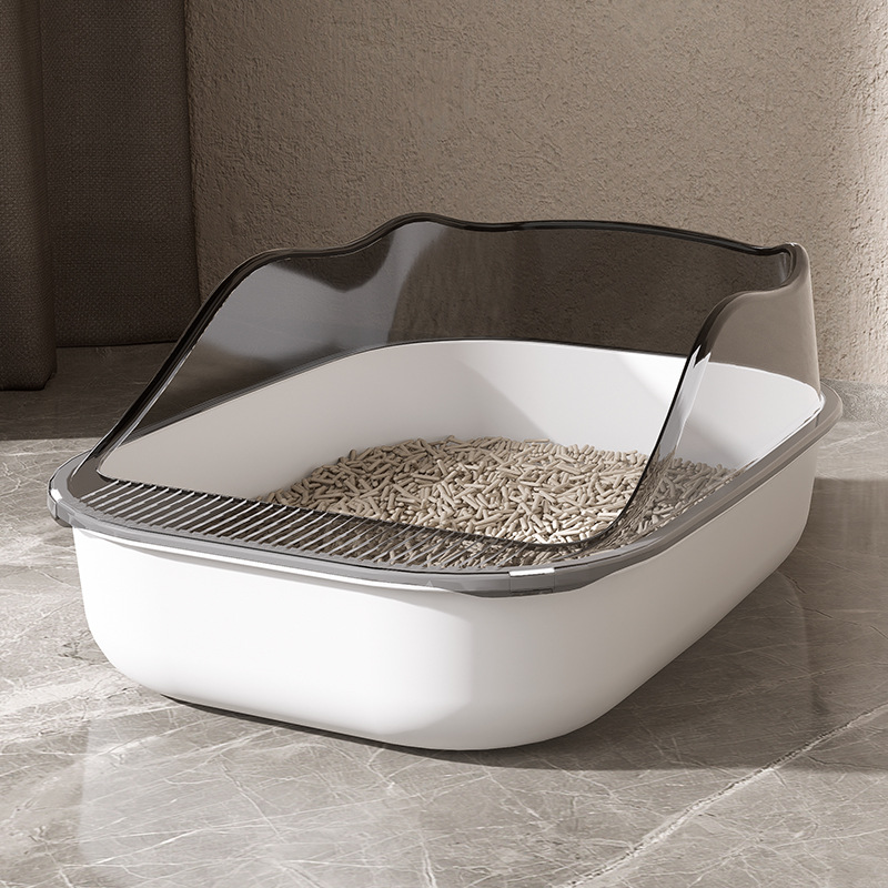 砂の飛び散りを防ぐ高い壁が特徴の猫トイレです。