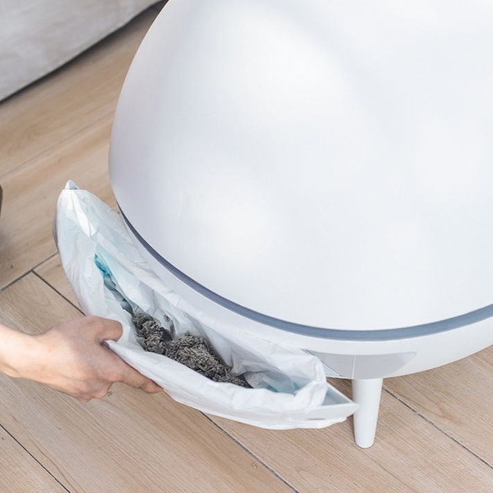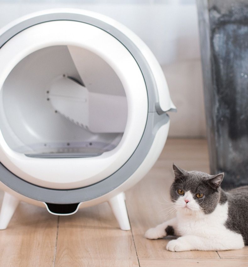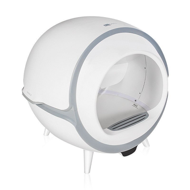 近未来的なデザインの猫トイレで、自動回転機能を搭載したドーム型モデルです。