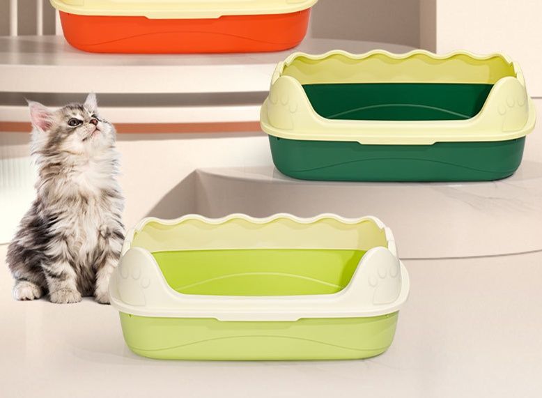 可愛らしい波縁デザインが特徴の深型猫トイレです。