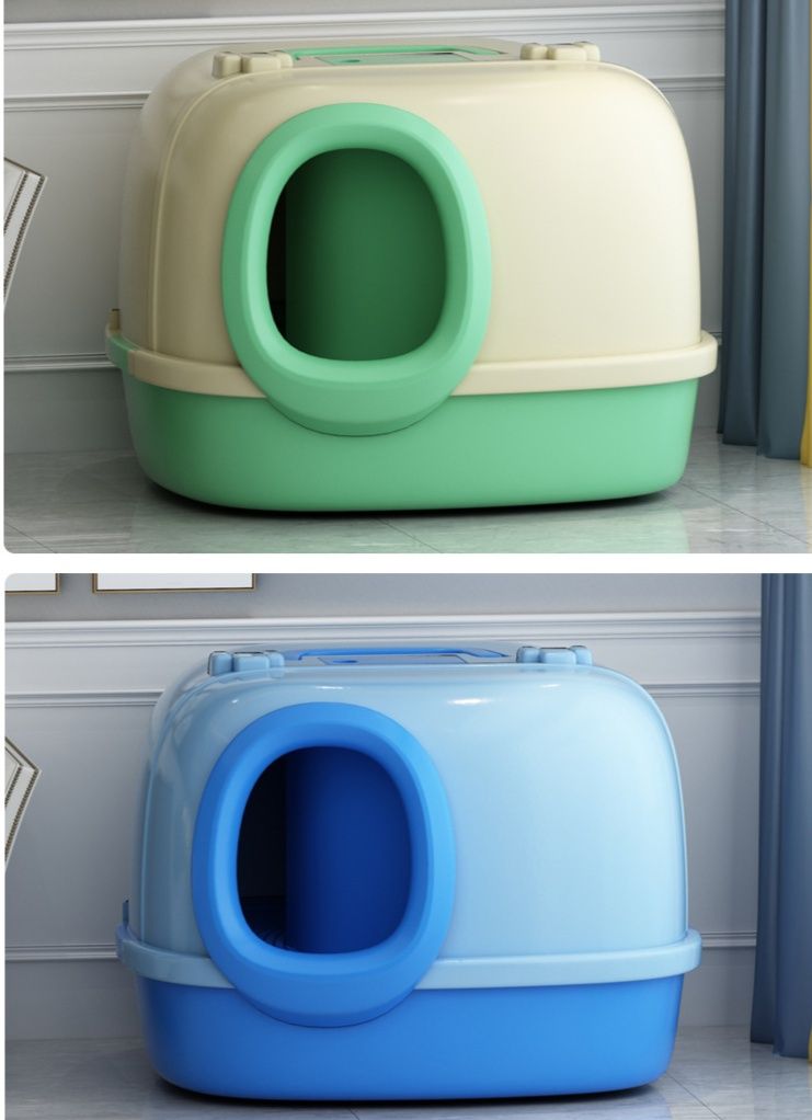 持ち運びに便利な取っ手が付いたドーム型の猫トイレです。