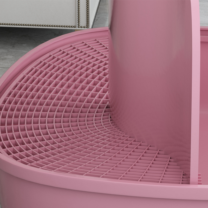 丸みを帯びた楕円形の出入り口は猫ちゃんの出入りがしやすく、砂の飛び散りを効果的に防ぎます。