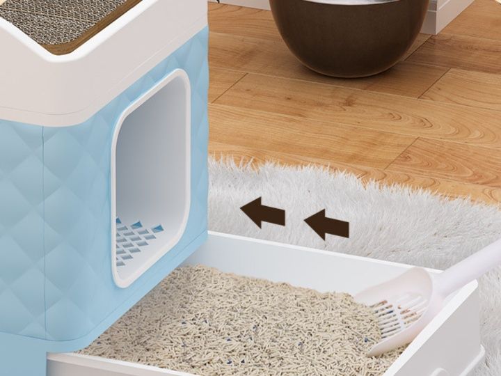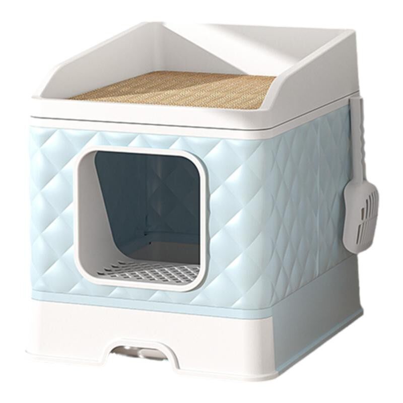 広々とした内部空間で愛猫がストレスなく使える猫トイレです。 蓋つき設計により臭いをしっかり閉じ込め、砂の飛び散りも防止します。 取り外し可能な分解式構造でお手入れも簡単です。 立体的なキルティング模様が美しく、インテリアにも自然に馴染みます。 専用スコップ付きで、いつでも清潔に保てる実用的な猫トイレです。