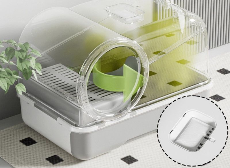 子猫の快適な排泄環境を実現する猫トイレです。 封閉式設計で臭いをしっかり閉じ込め、内蔵の消臭袋と隔臭風道設計により嫌な臭いを効果的に防ぎます。 引き出し式の砂受けトレーが付いており、飛び散った砂もしっかりキャッチしてお掃除も簡単です。 透明な上蓋で中の様子が確認でき、丸い出入り口は子猫が安心して使える設計になっています。 室内を清潔に保ちながら愛猫の健康管理もできる優れた猫トイレです。