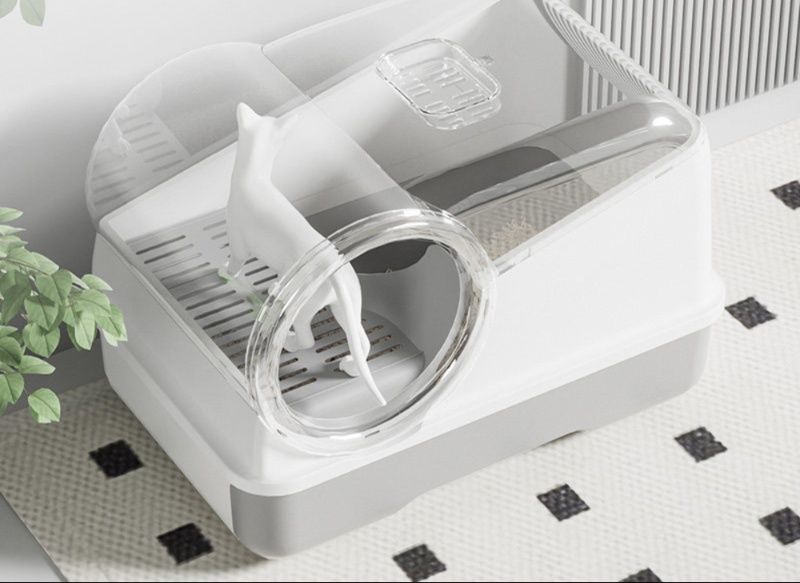 透明な上蓋で中の様子が確認でき、丸い出入り口は子猫が安心して使える設計になっています。
